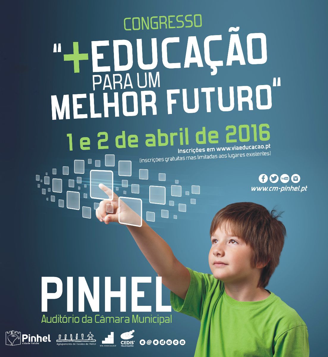 + EDUCAÇÃO PARA UM MELHOR FUTURO É este o tema que a Via Educação em parceria com a Autarquia de Pinhel se propõe abordar neste congresso, convidando um conjunto de oradores com uma vasta experência nesta área. Datas: 1 e 2 de abril de 2016 Local: Auditório da Câmara Municipal de Pinhel